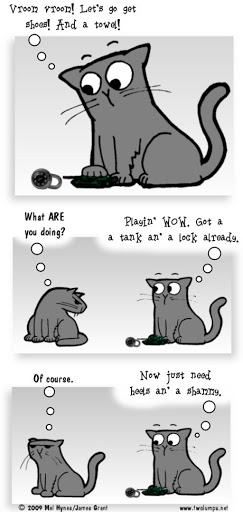 Two lumps is an ongoing comic about the adventures of two deranged housecats. By J. Grant and Mel Hayes.